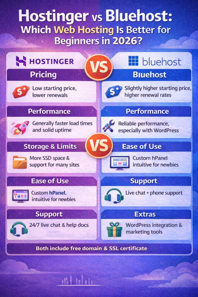 Hostinger vs Bluehost: Which Web Hosting Is Better for Beginners in 2026?